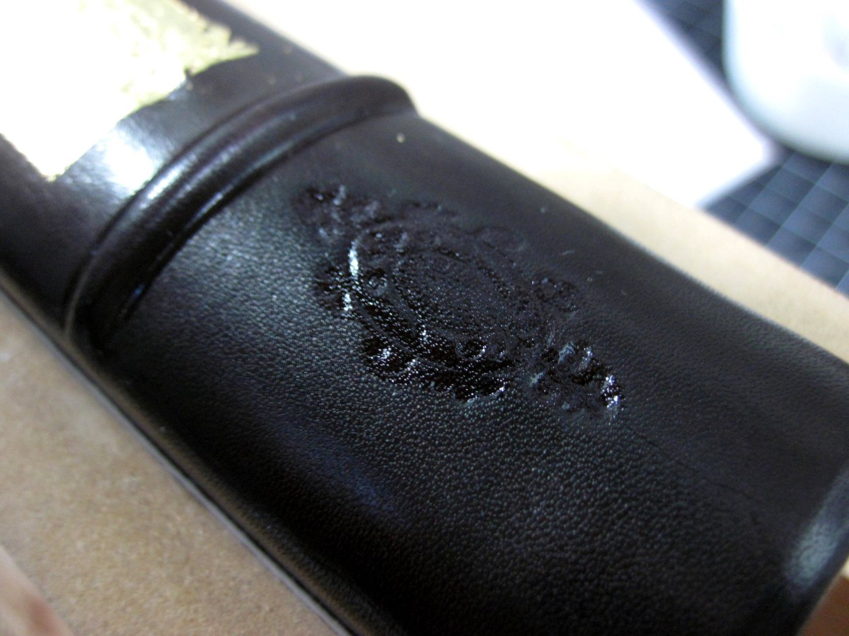 ??????????????????????????????? Sep25 Published at 3264 × 2448 in Gold Tooling Tennyson’s The Princess ← Previous Next → Before applying gold, the binder must make an initial impression into the leather of the book. This is called ‘blind tooling’.