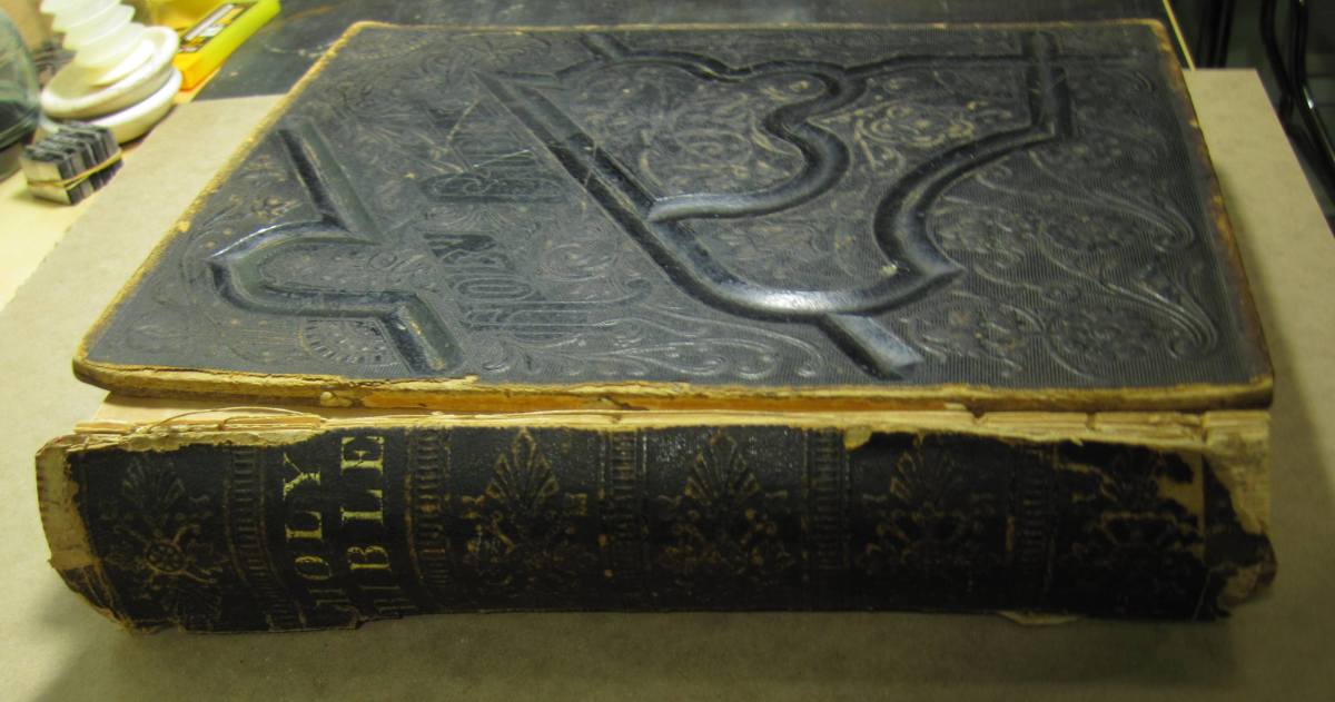??????????????????????????????? Apr21 Published at 3052 × 1607 in Bible Restorations 2012-2014 ← Previous Next → Dimensional Bible with covers detached prior to restoration