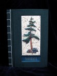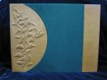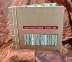 - Japanese stab journal-custom design in silk bookcloth with leather inset and polymer clay sculpture panel
