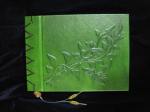 - Japanese stab photo album in green goatskin, silk book cloth and leather lacing